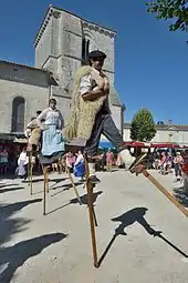 Et il m’expliqua comment les Landais, pour traverser leurs terres sablonneuses ou marécageuses et ne pas enfoncer dedans jusqu’aux hanches, se servaient de deux longs bâtons garnis d’un étrier, auxquels ils attachaient leurs pieds. — (Hector Malot, Sans famille, Dentu E., 1887, pages 1-347) La nuit, enveloppés de draps et montés sur des échasses, ils allaient dans les jardins et faisaient évanouir de peur les servantes attardées aux bras de leurs amoureux.