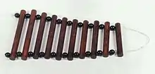 - (Musique) Régale, instrument formé de lames de bois dur qu’on touche avec une petite boule d’ivoire attachée à une petite baguette.