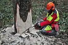 - (Exploitation forestière) Acte par lequel on élimine les excroissances se trouvant sur le bas du tronc des arbres pour permettre un abattage plus facile.