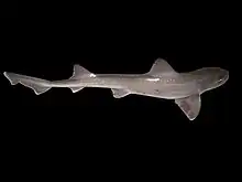 - (Zoologie) Espèce de requin de taille moyenne (2 m), une émissole à 5 paires de fentes branchiales, au dos gris tacheté.