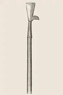 - (Arboriculture) Outil coupant muni d’un long manche, qui servait anciennement à émonder les arbres.