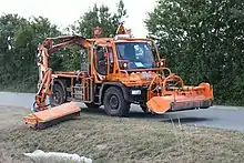 - (Mécanique agricole) Bras articulé de 4 à 5 m de long, monté sur un engin agricole et qui porte en son extrémité un outil pour faucher, broyer, débroussailler.