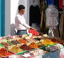 - Arabe : بقال (ar) baqqāl masculin, بَدَّال (ar) baddèl