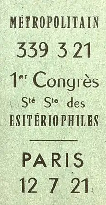 Ticket de métro lors du premier congrès de la société des esitériophiles.
