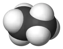 - (Chimie organique, Biochimie) Hydrocarbure saturé de la famille des paraffines, de formule chimique C2H6. C’est un gaz très légèrement plus lourd que l’air, facilement liquéfiable.