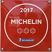 - Signe, pouvant être répété, indiquant la qualité, l’aspect positif de quelque chose. On trouve parfois des demi-étoiles qui désignent des points intermédiaires. —(En particulier) Symbole établissant une échelle de notation et de classification hôtelière et gastronomique par le Guide Michelin, se retrouvant sur la signalétique des établissements concernés.