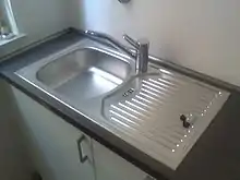 - Anglais : sink (en) (États-Unis), kitchen sink (en) (États-Unis), washbasin (en) (Royaume-Uni), kitchen washbasin (en) (Royaume-Uni)