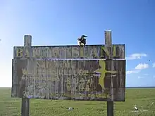 Panneau multilingue sur l’île Baker avertissant les visiteurs qu’ils se trouvent dans une aire protégée interdite d’accès.
