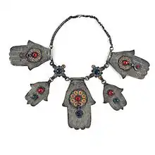 - khamsa, ornement en forme de main, porté par les femmes et les enfants comme talisman contre le mauvais œil.