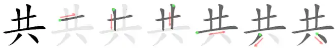 - Composés de 共 dans le ShuoWen : 輂, 拲, 拱, 洪, 㤨, 恭, 烘, 供, 鬨, 珙