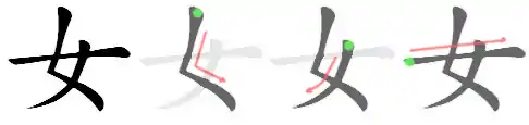 - Composés de 女 dans le ShuoWen : 姦, 奻, 汝, 籹, 妾