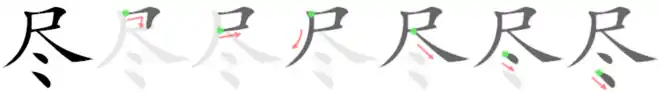 - Kun’yomi : つくす (tsukusu), つきる (tsukiru), ことごとく (kotogotoku)