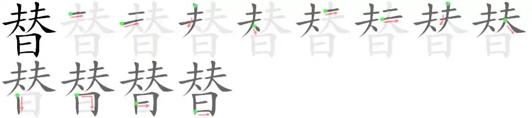 - La composition évoque l'idée de dire (曰) la succession de deux hommes (竝 déformé en une répétition de 夫) : l'historique de succession.