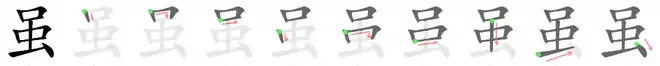 - Rangement dans les dictionnaires : Clé : 虫+ 3 trait(s) - Nombre total de traits : 9