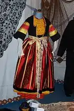 Chupenn de Pont l'Abbé - {{lien|chustinenn]] (korsaj) : corsage. La mode évoluant, le corselet et le gilet ont progressivement été attachés en une seule appelée camisole