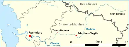 - (Géographie) Rivière français du Poitou-Charentes, affluent droit de la Charente, qui arrose Saint-Jean-d’Angély.