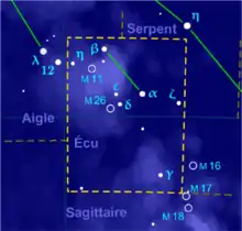 - (Astronomie) Écu de Sobieski, constellation de l’hémisphère nord.
