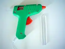 - (Technique) Pistolet à colle, (outil qui permet de réaliser des collages de précision sur une grande variété de matériaux, en faisant fondre de la colle en bâtonnets).