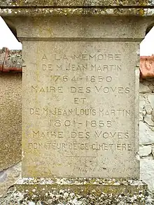 À la mémoire de deux maires des Voves, sur le calvaire du cimetière.