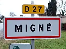 - (Géographie) (Avant 1958) Ancien nom de la commune française Migné-Auxances.