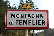 Panneau d’entrée dans Montagna-le-Templier.