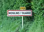 Un panneau d'agglomération de Moulins-sur-Ouanne.