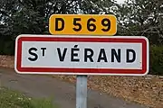 Panneau d'entrée dans Saint-Vérand, Saône-et-Loire.