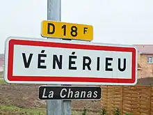 Panneau d'agglomération de Vénérieu.