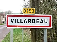 Panneau d'agglomération de Villardeau.