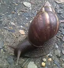 - (Malacologie) Espèce d’escargot géant d’Afrique originaire d’Afrique de l’Est, dont la coquille conique, deux fois plus haute que large, est brune avec des marques transversales plus sombres.