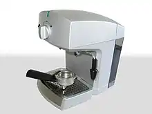 Machine à café expresso, corps en ABS (acrylonitrile butadiène styrène), réservoir en ASA (acrylonitrile styrène acrylate).