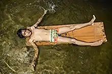 Un garçon allongé sur une planche se laisse flotter sur l’eau (2).