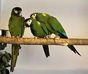 Trois aras à collier jaune.