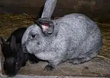 - Race de lapins, originaires de l’Angleterre, de petite taille, à robe grise argentée.