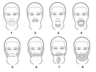 - Japonais : 不精ひげ (ja) bushōhige, 無精ひげ (ja) bushōhige