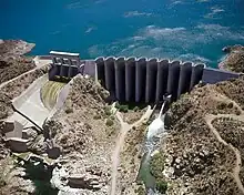 - (Construction) Constructions qui opposent un obstacle à un cours d’eau et qui ont pour objet de retenir l’eau, d’en élever le niveau, d’empêcher les inondations, d’obtenir une force motrice ou comme réserve pour l'irrigation et la consommation humaine[2].