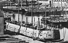 - (Marine, Militaire) Sorte de bateau à faible tirant d’eau, fortement blindé et chargé d’une puissante artillerie pour attaquer des zones côtières ou pour défendre des ports.