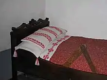 - Du vieil anglais bedd, du proto-germanique *badjan.
