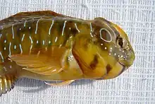 - (Zoologie) Espèce de blennies au corps tacheté, de l’Atlantique, Méditerranée et mer Noire.