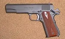 Ce revolver Springfield Armory semi-automatique M1911A1 de calibre .45 a été traité par la bondérisation au phosphate de zinc, ce qui lui donne ce fini métallique d'un gris mat.