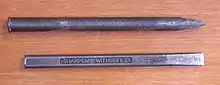 - Outil de maçon ou de mécanicien, à lame plate, que l'on frappe avec un maillet ou un marteau.