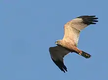 - (Ornithologie) Grand busard de l'Ancien Monde dont le mâle a un plumage tricolore, dans l'ensemble brun sombre avec les ailes gris argenté aux extrémités noires.