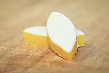 - Confiserie de forme oblongue, d'environ 5 centimètres de long, faite de pâte d’amande mêlée de fruits confits (melon, orange) posée sur un biscuit et nappée de glace royale ; spécialité d’Aix-en-Provence.