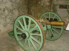 - (Héraldique) Meuble représentant l’arme du même nom dans les armoiries. Ce terme fait référence au fût du canon et non à la pièce d’artillerie dans son ensemble (fût/affût). C’est pourquoi on précise dans les blasonnements qu’il est affûté ou sur son affût.
