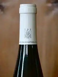 Une capsule sur le goulot d'une bouteille de vin. (sens 8)