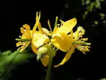 - (Botanique) Papavéracée du genre Chelidonium dont le suc est suc corrosif.