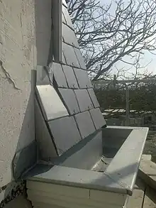 — (Hervé Bazin, Cri de la chouette, Grasset, 1972, réédition Le Livre de Poche, page 143)La gouttière peut être considérée comme un petit chéneau léger suspendu à la toiture.