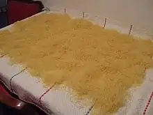 - (Cuisine) Vermicelle de blé tendre, fins et longs, vendu généralement dans une boite en carton comme roulés sur un écheveau.