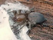 - (Zoologie) Petite araignée brune, vivant en Europe et en Asie centrale, dans les forêts où elle s’abrite souvent sous les écorces.