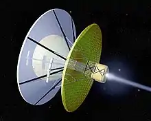 Vue d’artiste d’un vaisseau spatial équipé d’un collecteur Bussard.